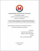 - ItemGestión del riesgo crediticio de la Cooperativa de Ahorro y Crédito educadores de Cotopaxi "Cacec" ltda., ubicada en la ciudad Latacunga, provincia Cotopaxi en el período del 1 de enero al 31 de diciembre 2014(LATACUNGA / UTC / 2016, 2016-06) Nauta Padilla, Luis Daniel; Tapia Jácome, Jorge Rubén; Miranda Pichucho, Freddy RamónEl presente trabajo de investigación se realizó en la Cooperativa de Ahorro y Crédito Educadores de Cotopaxi “CACEC” Ltda., con el objetivo de aplicar una Gestión del Riesgo Crediticio para medir el nivel de exposición al riesgo y el alcance de objetivos y metas, para este fin se utilizó el método inductivo, analítico, observación, descriptivo, también se aplicó técnicas como la entrevista efectuada al Gerente y encuestas a los empleados y socios de la entidad, que sirvieron de ayuda para la recopilación de información, con el fin de conocer la situación actual. En la Cooperativa se aplicó una Gestión del Riesgo Crediticio, en el periodo 1 de enero al 31 de diciembre del 2014. Esta Gestión permite evaluar y detectar posibles falencias y está diseñada para obtener una certeza razonable sobre el nivel de exposición al riego y cumplimiento de las actividades…